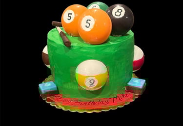 Tina is incredibly talented and will work with you to create an amazing one-of-a-kind cake or dessert! She made a wonderful vanilla cake with strawberry filling, and everyone said it was very rich, tasty and moist! Pretty cool that everything on it was edible, too! It was great to end my hubby’s annual birthday pool tournament with this sweet treat!
